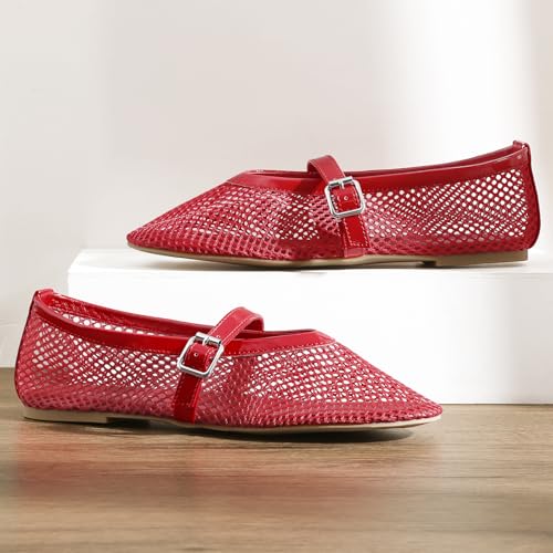 • Design: The flats shoes feature a cute round toe, fishnet and patent leather combination upper, adjustable buckle starp, supple lining and cushion insole. Mary Jane style to lend your fashionable and elegant touch.