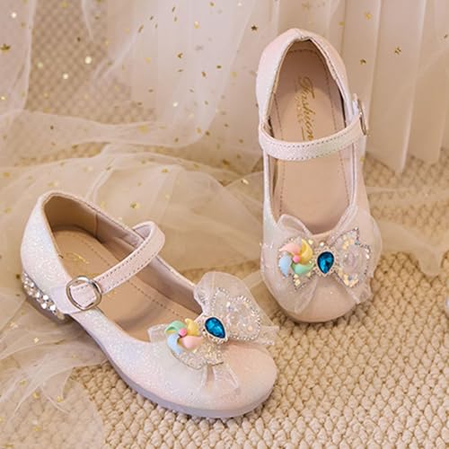 IWIHMIV Toddler Girl Princess Shoes Girls Dress Mary Jane Flower Girl Low Thick Heel School Wedding Party Shoes 4