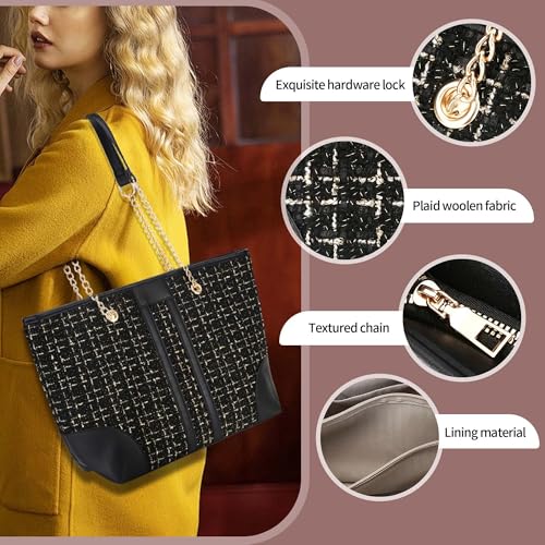• ❤️Material: This women tote bag is made of first-class Tweed+PU leather with an elegant golden metal chain handle design, polyester lining. Fashionable and Retro.