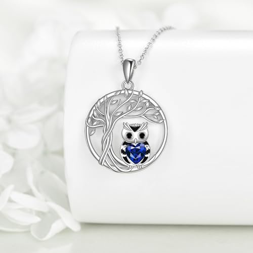 Owl Necklace 925 Sterling Silver Tree of Life Pendant Birthstone Jewelry Cute Animal Gift for Women Mother
