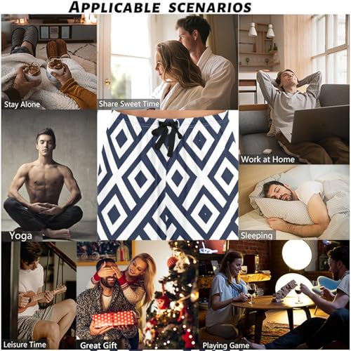 visesunny Mens Cotton Pajama Pants PJ Bottoms Black Square Diamond Lightweight plush Lounge Sleepwear with Pockets