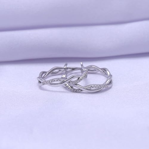 Material: White GoldMetal type: White GoldBack Finding: Latch BackEarring design: HoopGem type: DiamondAn Entrancing look, this Twist Twisted Hoop Earrings Adds A Touch Of Nature-Inspired Beauty To Your Look In 14k Rhodium Plated Sterling Silver. Makes a Standout Addition to Your Collection With Round Cut White Natural Diamond (0.12 Cttw)The natural white diamonds offer a subtle sparkle, enhancing the sophisticated twisted hoop design for a present-day yet timeless look.These twisted hoop earrings measure 21mm in height and approximately 4mm in length, feature 0.12 carats of natural white diamonds with I-J color and I2-I3 clarity, prong-set for durability, secured with a latch back clasp for comfortable, reliable wear.Perfect Gift Ideas for Mothers Day, Christmas Day, Wedding, Birthday, Valentine's Day, Graduation Gift for Sister, Mother, Mom, Grandmother, Wife, friend, Aunt, Mum, Grandma, Friends Anniversary Day and Birthday to your friend, It is a good gift to your princesPlease note that actual colors may vary slightly from what is shown on different monitors, but the style remains consistent with the product description. Perfect for everyday use. superior materials and excellent craftsmanship ensure long-lasting durability.