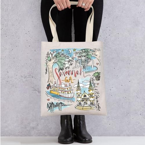 WZMPA Savannah Travel Tote Bag - Georgia Souvenir Gift, Trip Shoulder Bag, Forsyth Park Merchandise 6