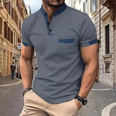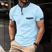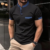 Men's Golf Shirt Golf Polo Work Casual Lapel Short Sleeve Basic contemporary Color Block Patchwork Button Spring & Summer Regular Fit Black White Pink Army Green Sky Blue Orange Golf Shirt