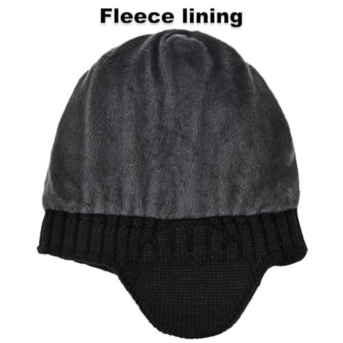 Unisex Kids Earflap Beanie and Scarf Set 2pcs Winter cozy Knit Fleece Lined Skull Cap Neck Warmer for Boys Girls 2-8y