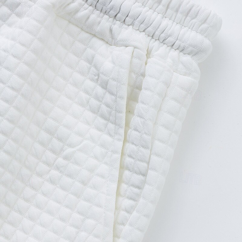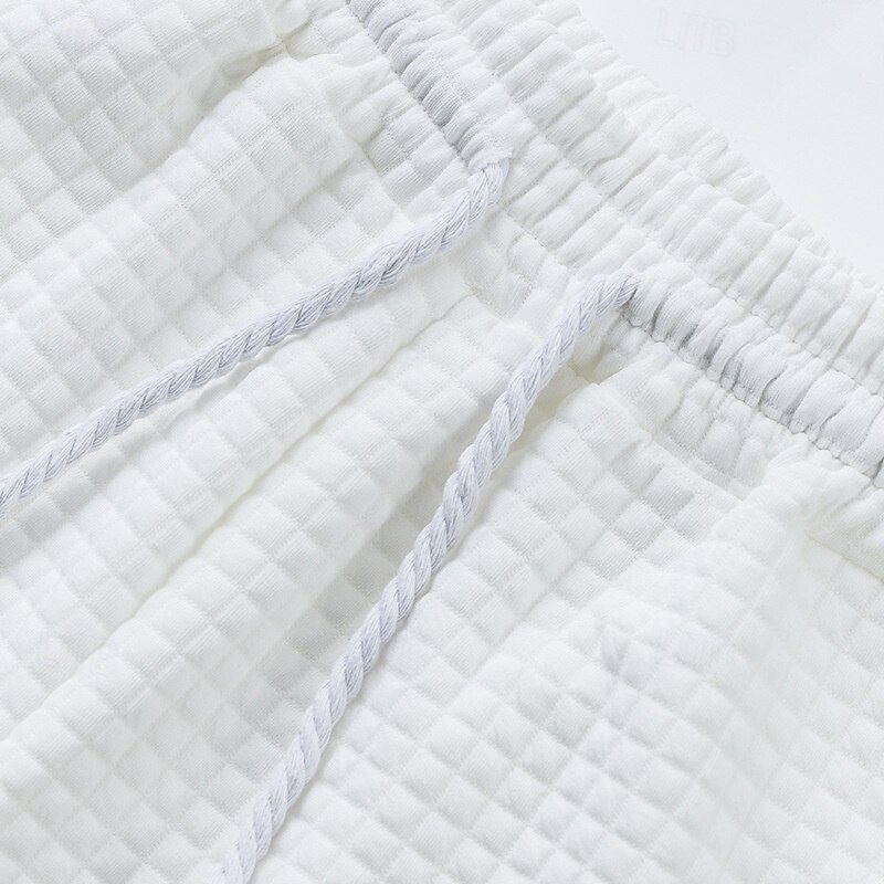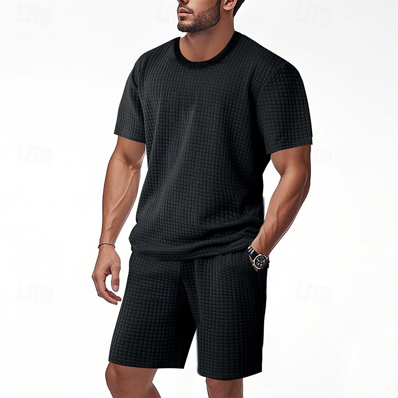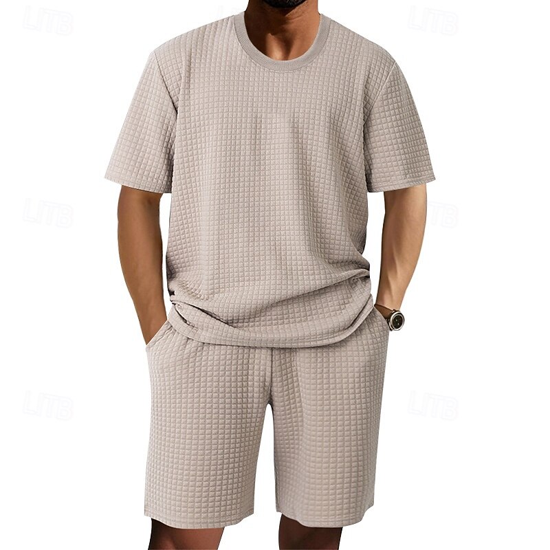 Men's Waffle Shirt T-shirt Suits 2 Pieces Outfits Tee & Shorts Short Sleeve Crew Neck Summer Plain Fashion Casual Jacquard 2 Piece Vacation Daily Wear Going out Black White Khaki Top Tee for Men