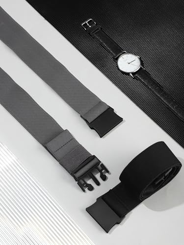 Fabric type: 100% PolyesterCare instructions: Hand Wash OnlyOrigin: ImportedPractical and trendy Choice: come in a pack of 2 stretch belts and are available in chic black and gray colors; Versatile, stylish and comfortable, the set makes a nice gift for any occasion, well matching casual clothing you wear, shirts, casual pants, tactical pants, military shorts, jeans, uniforms, and other pantsQuality Material and Versatility: tailored from quality polyester, our hiking belt is not just sturdy but also versatile; This unisex belt offers elasticity and comfort for your everyday wear, making it a wardrobe addition for long lasting use; The non metal quick release buckle is convenient to use, placed flat, feeling like there is no belt tiedAdjustable for Comfort: elastic belt offers flexibility and comfort, about 1.57 inch/ 4 cm wide, 43 inch/ 110 cm long; Thanks to their high elastic nature, they couple an appealing design with an adjustable fit that ensures no restrictive movements; Regardless of your activities, these belts are suitable for your comfort needsAirport Friendly: equipped with a quality, non metal quick release buckle, our stretchy belt offers convenience and ease of use; Not only that, but this design is also airport friendly, easy to open and close, not causing alarm from metal detector, making traveling hassle free and save your timeStay Comfortable and Active for Outdoor Activities: the comfortable belt is intended for those who love an active lifestyle; Whether you're hiking, biking, or running errands, these belts ensure your comfort and ease of movement; Enjoy your outdoor activities without worrying about your belt Perfect for everyday use. top-grade materials and excellent craftsmanship ensure long-lasting durability.