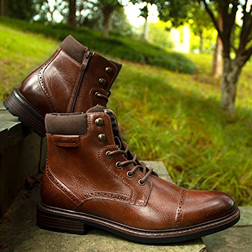 Temeshu Mens Casual Lace Up Motorcycle Boots Classic Combat Ankle Boots(with shoelaces) HH06 Brown 10.5 6
