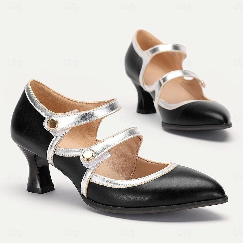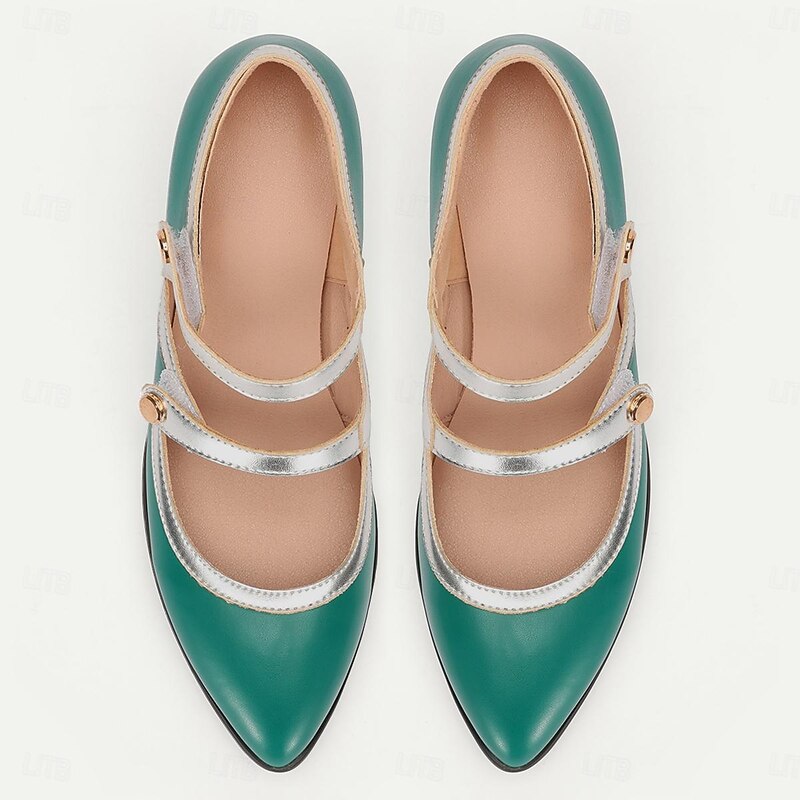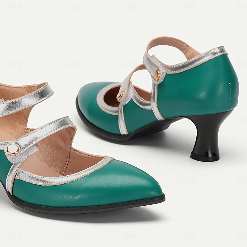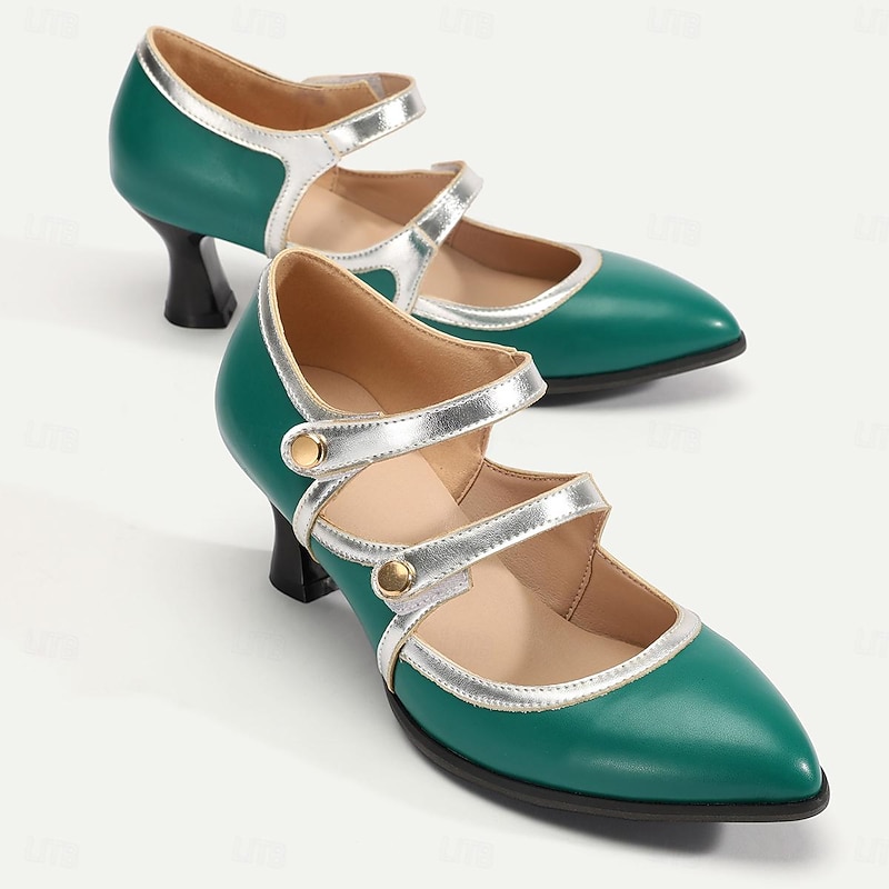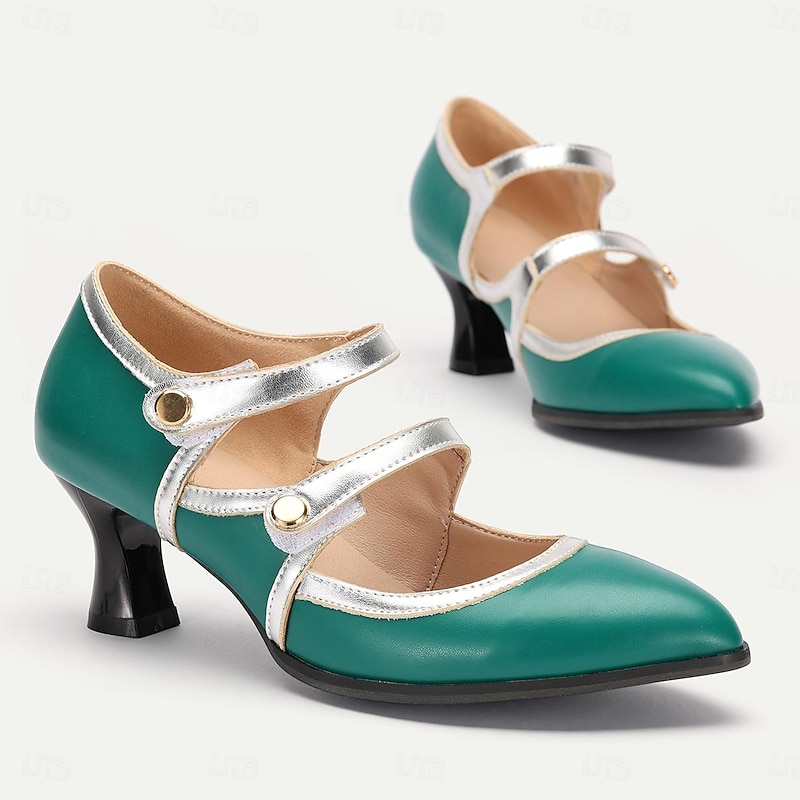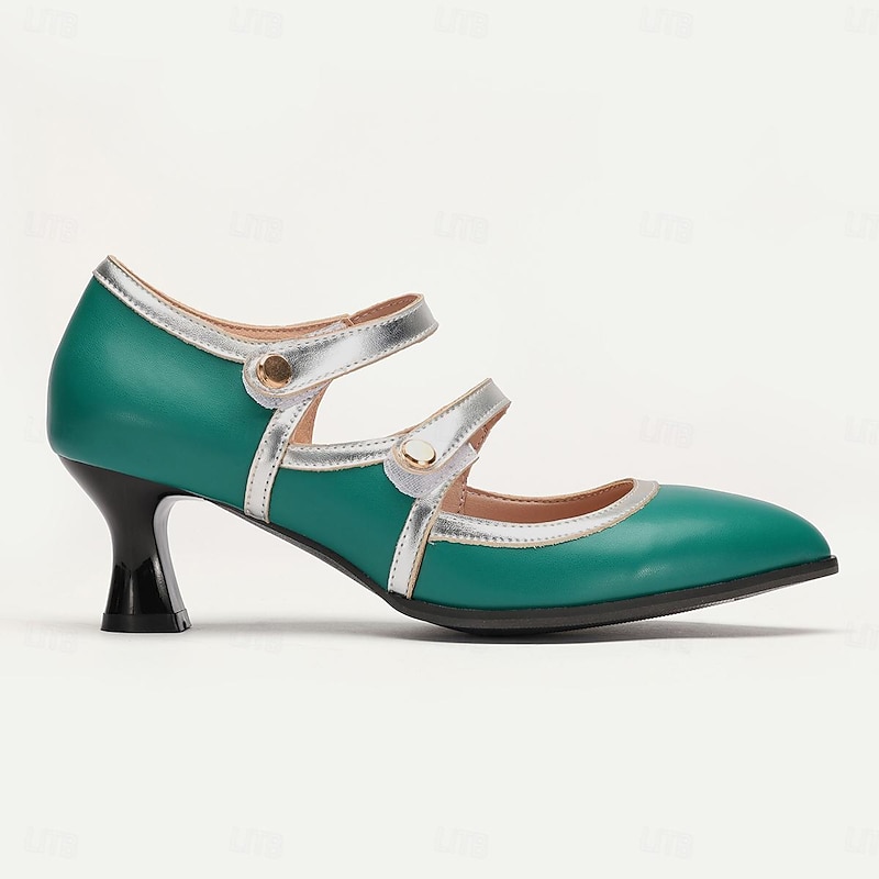 Highlights [Fabric] : Crafted from high-quality PU leather, these women's heels offer a sleek and sophisticated look. The interior is lined with synthetic leather, providing enhanced comfort and breathability, making them suitable for extended wear. [Silhouette] : These vintage-inspired heels feature a classic round toe shape and a mid-heel design that perfectly balances elegance and comfort. The structure supports your feet with a stable black block heel, ideal for both casual outings and formal events. [Design Highlights] : The shoes boast a striking emerald green color contrasted by chic silver metallic accents for a present-day twist. The double straps are adorned with gold-toned buttons, offering a secure fit and adding a touch of luxury. The adjustable straps ensure a tailored fit, enhancing both comfort and style. [Occasions] : Perfect for Oktoberfest, parties, and formal gatherings, these versatile heels are designed to complement a variety of events and settings. Whether attending a festive celebration or a sophisticated evening affair, they add charm and sophistication to your ensemble. [Size Information] : Available in a wide range of sizes from US5 to US13, these heels are designed to fit standard size guidelines, allowing you to select your usual shoe size with confidence. Perfect for everyday use. superior materials and excellent craftsmanship ensure long-lasting durability.