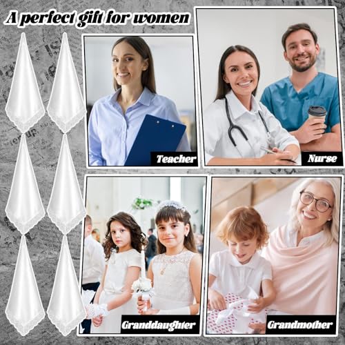 Care instructions: Hand Wash OnlyOrigin: ImportedAbundant Package Contents: our package comes with a set of 6 white satin handkerchiefs, each delicately trimmed with lace; These handkerchiefs are not only sleek but also a nice addition to your accessory collection; They are suitable for a wide variety of occasions, effortlessly adding a touch of elegance to your every outfit and making you stand out in any settingElegant Design Concept: the lap scarf is designed in a classic white color, which is highly compatible with the solemn and sacred atmosphere of churches and other religious places; The edges of these knee covering scarves are adorned with intricate lace; Specifically designed for women to cover their knees while sitting in churches or similar religious venues, they showcase a feminine and elegant demeanor without compromising on respect and solemnityMaterial Construction: our lace scarves are crafted from satin, which ensures outstanding quality and durability; The fabric is of moderate thickness, providing a comfortable and soft feel that is gentle on your skin; The design of this white handkerchief fully caters to the taste of fashionable women who pursue quality and styleIdeal Gift Option: each lap scarf for women is filled with feminine warmth and romance; It is not only suitable for daily wear but also makes a heartwarming gift for your wife, grandmother, mother, female friends, or anyone who like handkerchiefs; It's almost impossible for any lady to resist such a sweet and thoughtful presentDiverse Usage Scenarios: these scarves offer remarkable versatility and style, transcending their traditional function as lap scarves for women in church; They can be easily transformed into a trendy necktie, a fashionable bandana, or a charming wristband; Their convenience and design flexibility make them an essential item in every woman's wardrobe, ready to meet various styling needs at any time Perfect for everyday use. superior materials and excellent craftsmanship ensure long-lasting durability.