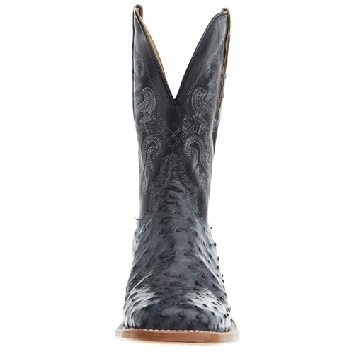 Tony Lama Men's Grey Full Quill Ostrich 11' Black Top Boot 5