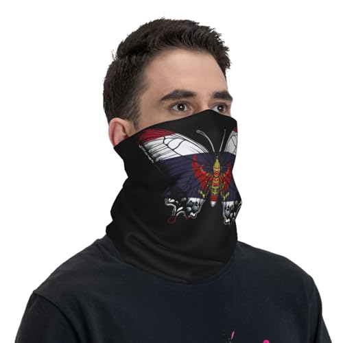 Thailand Thai Flag Butterfly Neck Gaiter Balaclava Face Mask for Men Women Patriotic Design Seamless Bandana Cover Scarf Headwear Headband Head Wrap White
