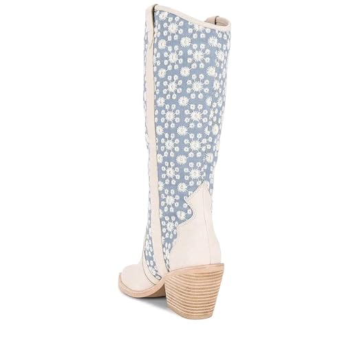 Cowgirl Knee High Boots for Women Block Heel and Pointed Toe Suede and Faux Leather with Flower Embroidery Boots 5