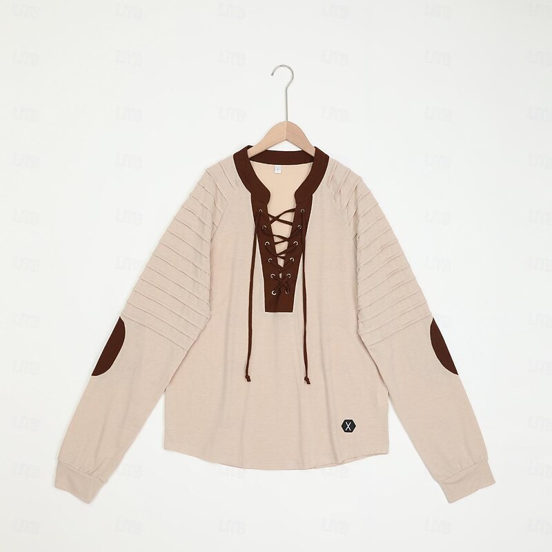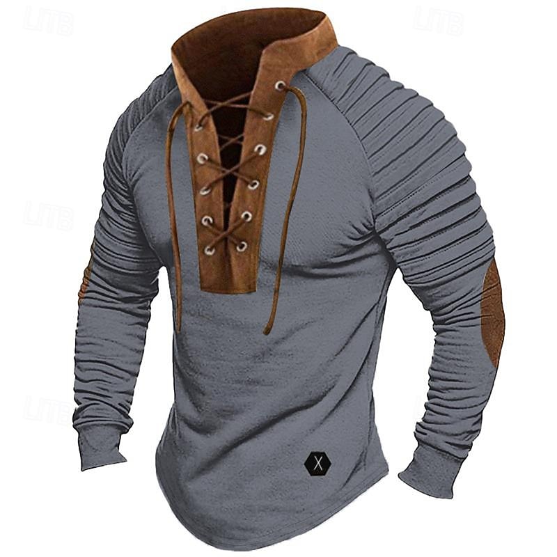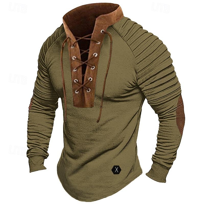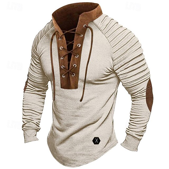 This Men's T Shirt Tee Top Long Sleeve Shirt Long Sleeve Standing Collar Spring & Fall Color Block Slim Pleated Fashion Designer Basic Drawstring Patchwork Vacation Street Going out Black Brown Beige Top combines elegant design with practical functionality. Every detail has been carefully considered to ensure you get the supreme possible experience. The finest construction means this product will serve you well for years to come.