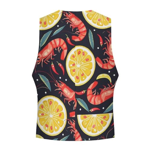 Lemon Shrimp Men's Suit Vests Business Formal Dress V-Neck Waistcoat Tops with 2 Pockets 1