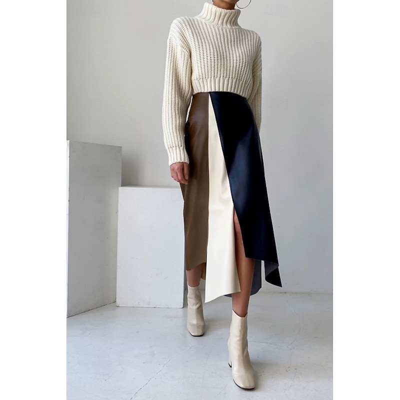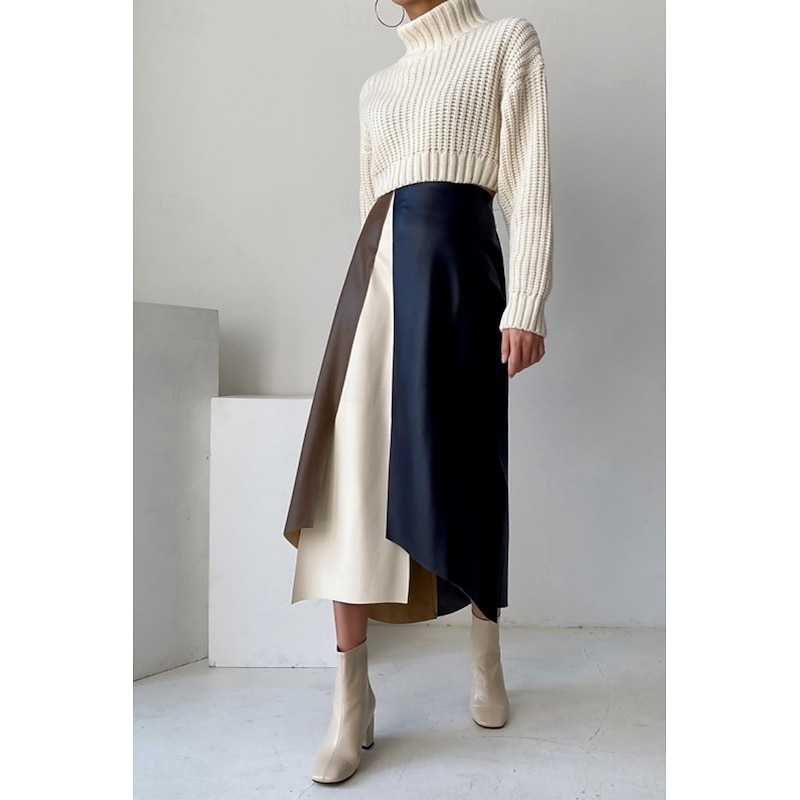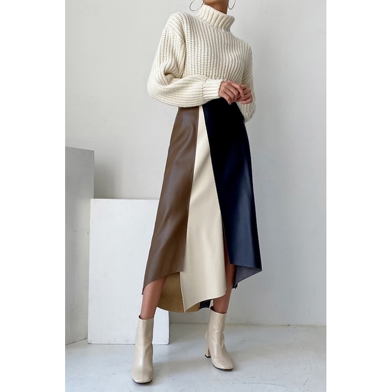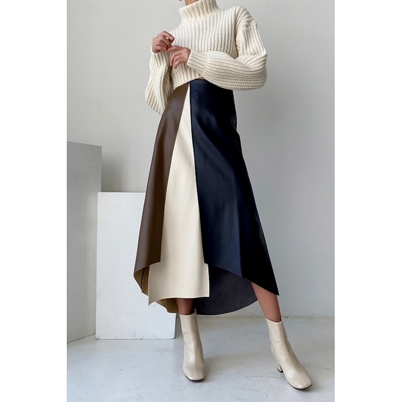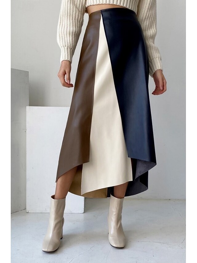 This Women's Skirt A Line Fashion Casual Midi High Waist Skirts Color Block Patchwork Inelastic Street Daily Beige Spring Polyester Faux Leather combines elegant design with practical functionality. Every detail has been carefully considered to ensure you get the foremost possible experience. The supreme construction means this product will serve you well for years to come.