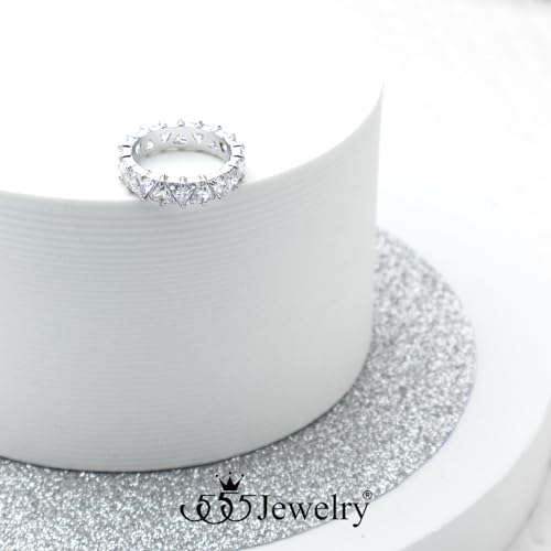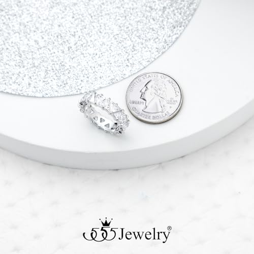 555Jewelry Triangle Shape Cubic Zirconia Wedding Band Stainless Steel Rings for Women Stackable Trillion Cut Eternity Band Rings US Size 6-10