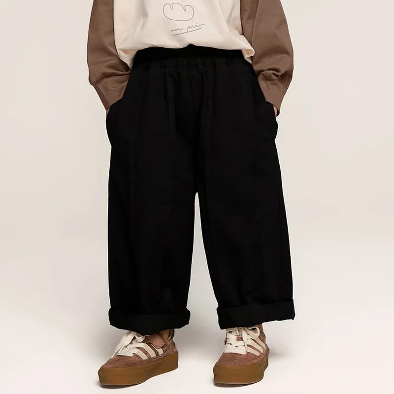 Dninmim Kids Solid Patchwork Trousers Boy Cotton Loose Casual Pants 4