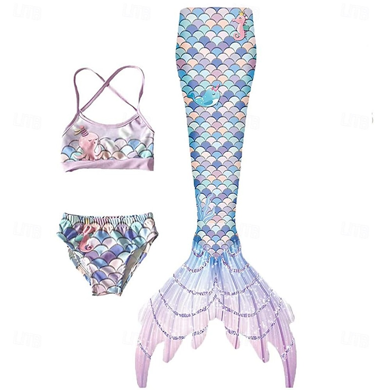 Why Choose Kids Girls' Three Piece Mermaid Swimwear Swimwear Outdoor Scales Bathing Suits 2-12 Years Summer White Yellow?
