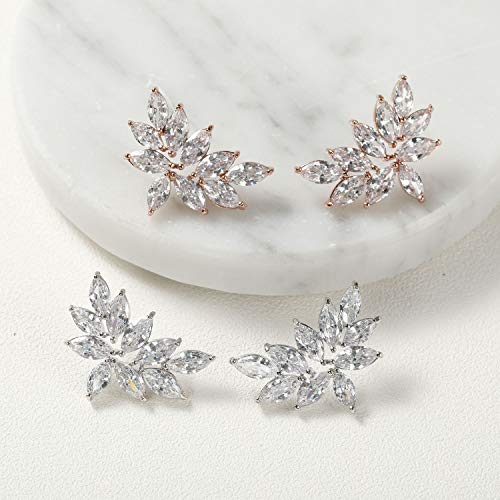 SWEETV Bridal Wedding Earrings for Brides Bridesmaid, Marquise Cubic Zirconia Rhinestone Cluster Earrings for Women, Prom