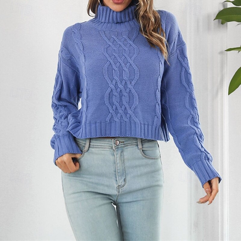 Why Choose Women's Pullover Casual Solid Color Chunky Turtleneck Knitted Long Sleeve Regular Tops Knit Daily Holiday Going out Blue Purple Fall Winter?