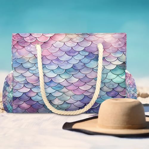 Spring Mermaid Nautical Beach Bags for Women Large Beach Tote Waterproof Sandproof Large Tote Bag Swim Pool Bags