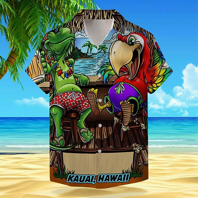 Why Choose Men's Floral Dinosaur Parrot Shirt Summer Hawaiian Shirt Aloha Shirt Short Sleeve Shirt Turndown Vacation Hawaiian Outdoor Vacation Hawaiian Brown Green khaki S M L?