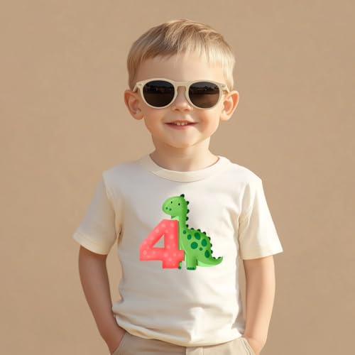 Fabric type: Cotton BlendCare instructions: Machine WashOrigin: ImportedNeck style: Crew NeckFun 4th Birthday Design – Features a bold number 4 with exciting themes like diggers, excavators, dinosaurs, and zebras, making it perfect for little adventurers.Perfect Birthday Gift – A great birthday present for 4-year-old boys who love construction trucks, animals, and dinosaur. Ideal for parties, photos, and celebrations.Soft & Comfortable – Made from breathable cotton blend fabric, this short-sleeve birthday boy shirt is lightweight, soft, and gentle on toddler skin, perfect for all-day wear.Durable & Kid-Friendly – High-quality print stays vibrant after multiple washes. The stretchy fabric allows easy movement for active kids.True to Size Fit – Available in toddler sizes, with a classic fit that’s easy to pair with jeans, shorts, or joggers. Check our size chart for the best fit.