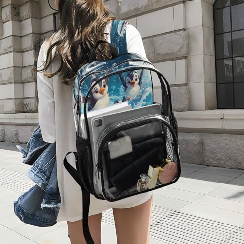 PVC Cartoon Penguin Underwater Swim Boys Girls School See Through Bag Clear Transparent Waterproof Backpack 1
