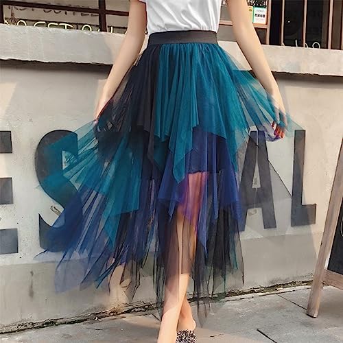 Women's A Line Tulle Midi Skirt Tiered Petticoat Skirts Tea-Length Elastic Waist Tutu Skirts Size for XXS-M