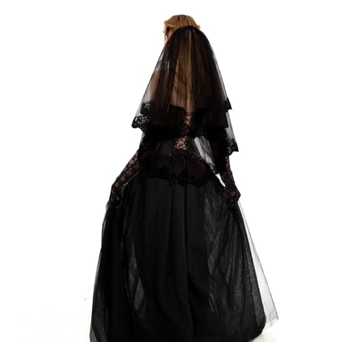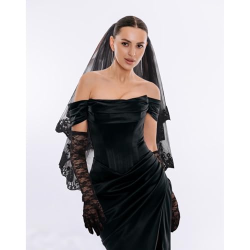 Semato Black Gloves and Black Veils for Women Bride Wedding Halloween Costume Party Accessories