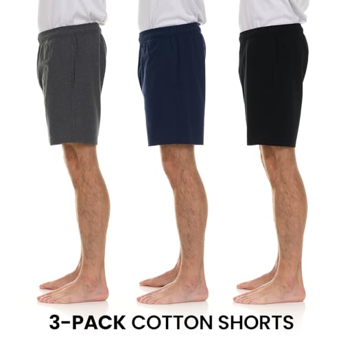 Essential Elements 3 Pack: Mens Cotton Shorts - 100% Cotton Lounge Athletic Casual Sleep Casual Pajama PJ Shorts 3