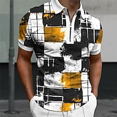 Men's Plaid Zip Polo Shirts Golf Shirt Short Sleeve Polo Shirts Collared Shirts Vintage Casual Vacation Wear Formal Wear Festival Wear 3D Print Quarter Zip Polo Summer Yellow Red Blue
