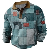 Highlights - Long sleeves for added coverage and warmth - Suitable for men - Eye-catching color block pattern - fashionable print design - Turndown neckline for a vintage and sophisticated look