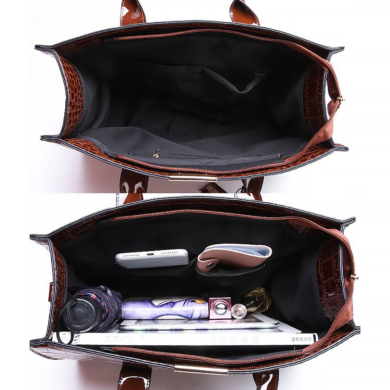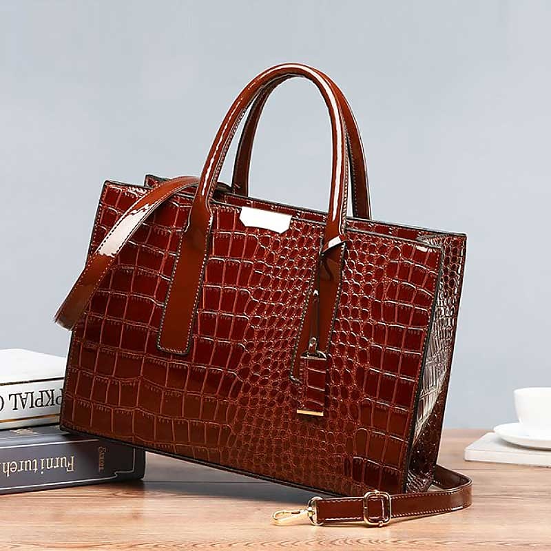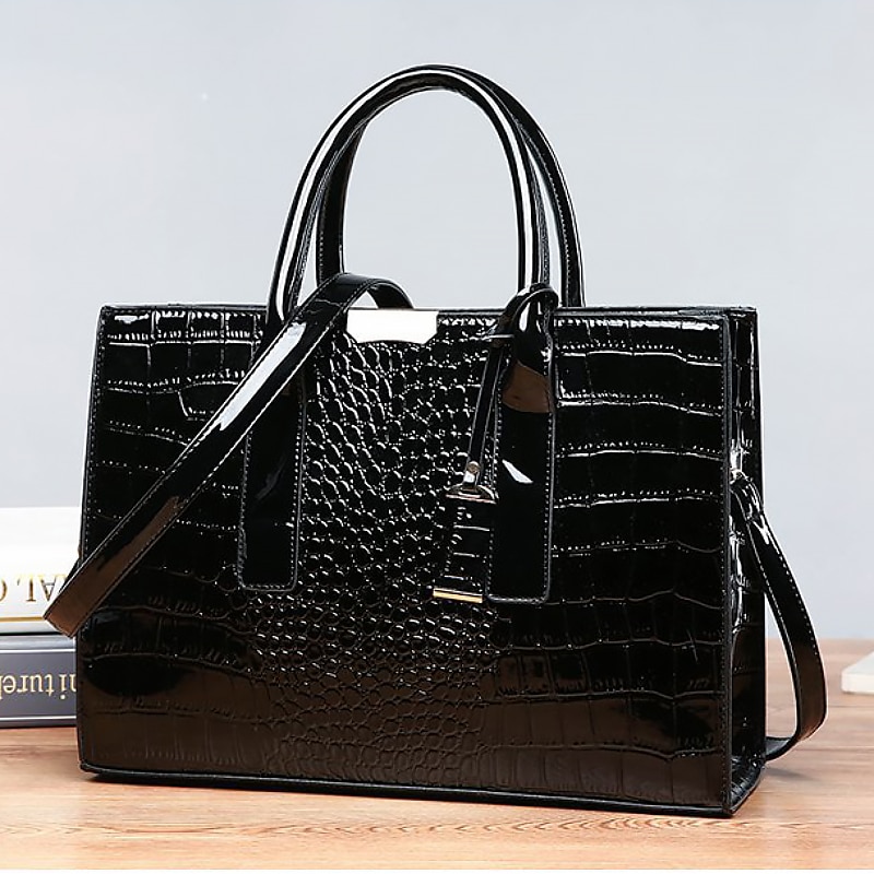 $32.99 - Women's Black Patent Leather Crocodile Pattern Handbag with Shoulder Strap - Elegant Office Tote Bag for Formal Occasions 2025. Shop for cheap Handbag & Totes online? Buy at lightinthebox.com on sale today!