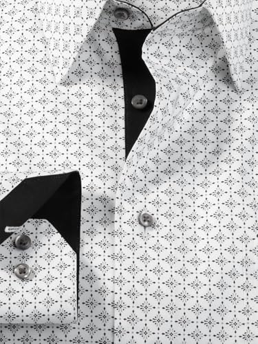 Paul Fredrick Men's Tailored Fit Comfort Stretch Non-Iron Geometric Dress Shirt 6