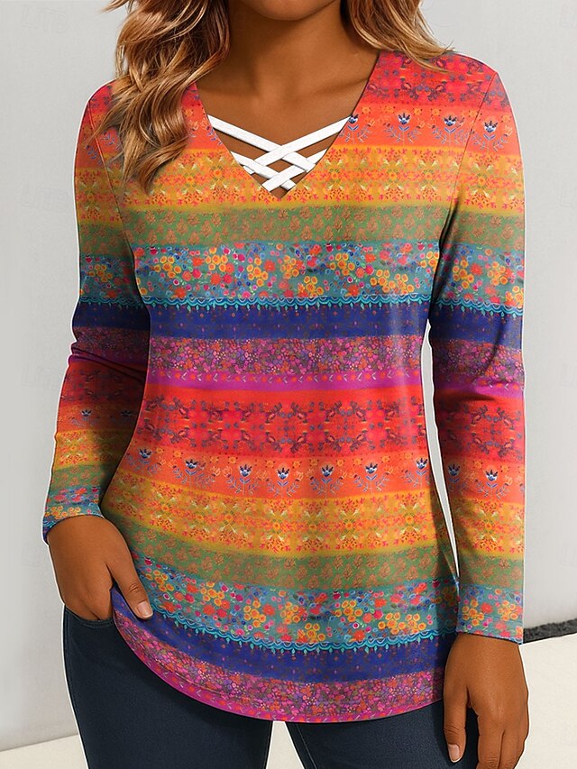 This Women's T Shirt Floral Graphic Vintage sleek Classic Long Sleeve V Neck Regular Tops Daily Cut Out Print Blue Purple Orange Green Spring Fall combines elegant design with practical functionality. Every detail has been carefully considered to ensure you get the best possible experience. The superior construction means this product will serve you well for years to come.