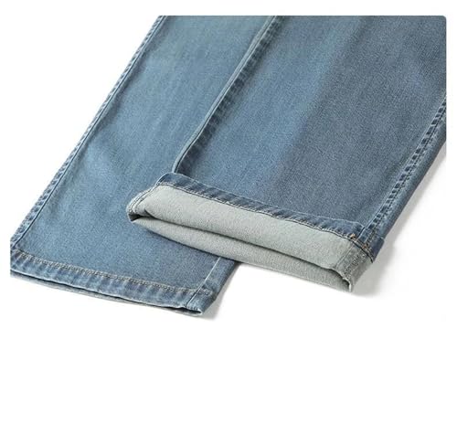 sought-after ! Men's Ice Silk Jeans Summer Thin Straight Stretch Denim Pants Business Casual enduring Baggy Trousers