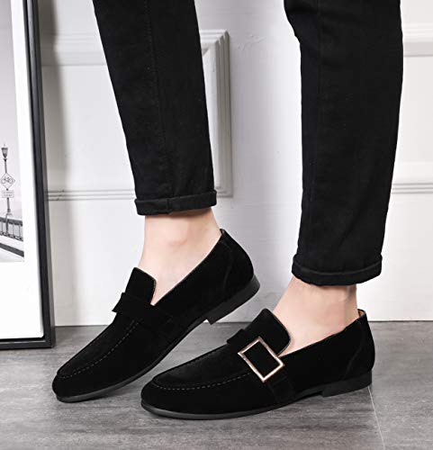 Casual Dress Shoes Men Slip on Driving Flats Suede Smoking Slipper Buckle Moccasins Loafers Black Brown Tan 7